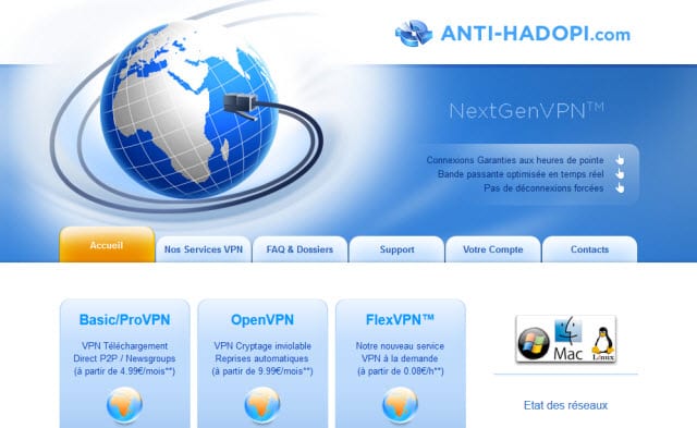 用户将配置自己的 PPTP 连接到所需的服务器。每月帐户的配额从 1 GB 到 50 GB 不等。